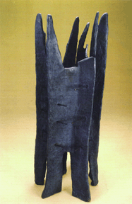Guardian is a model for a large sculpture. The piece will be approximately 30” high; the openings will be archways.