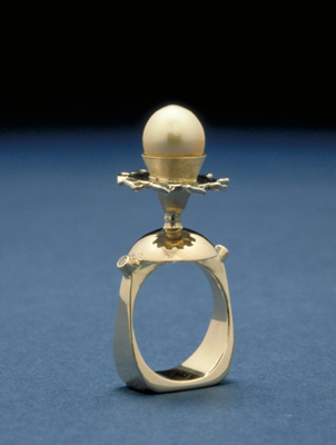 14 karat yellow and white gold, yellow Burmese pearl, two diamonds.